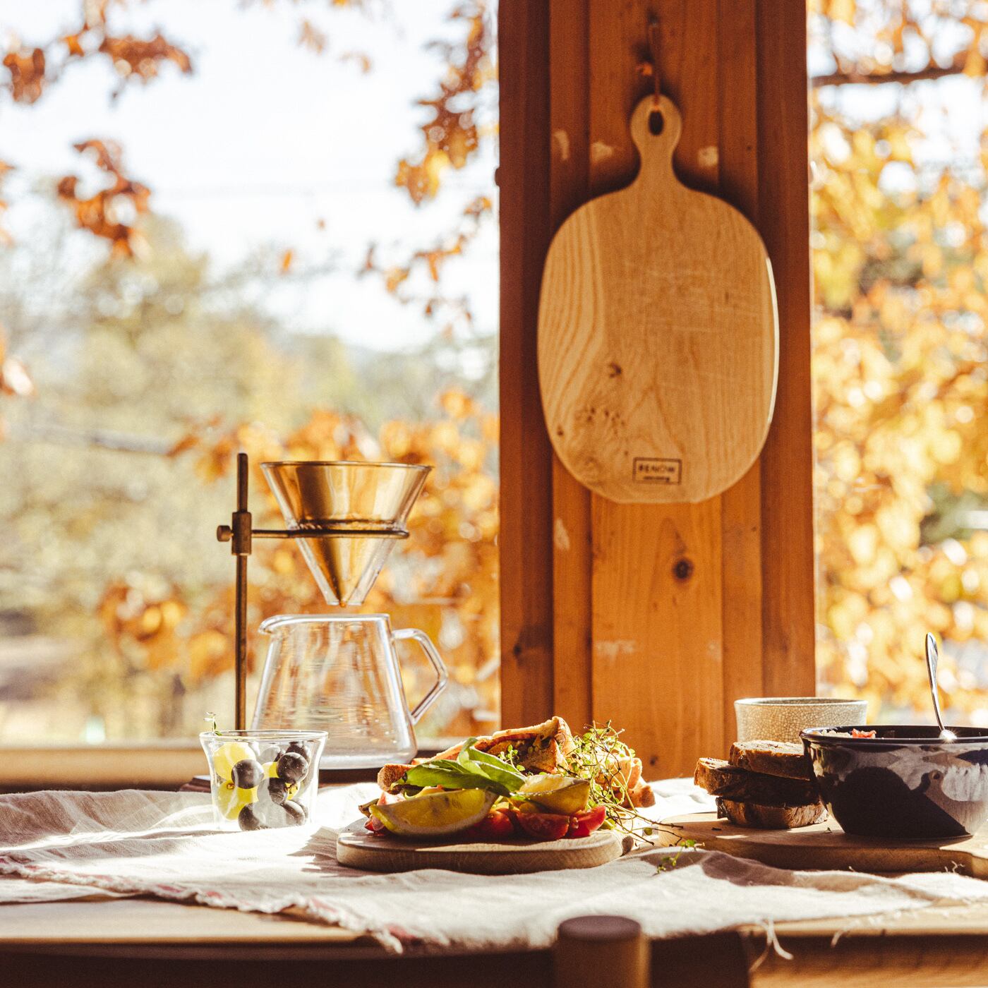 贅沢に1枚の無垢材から切り出したカッテイングボード。「切るという、まな板の機能」「美しく盛り付けられるという、うつわの機能」の2つの機能を使いやすいサイズで制作。用途によってサイズはM Size ・L Sizeの2種類を用意しています。