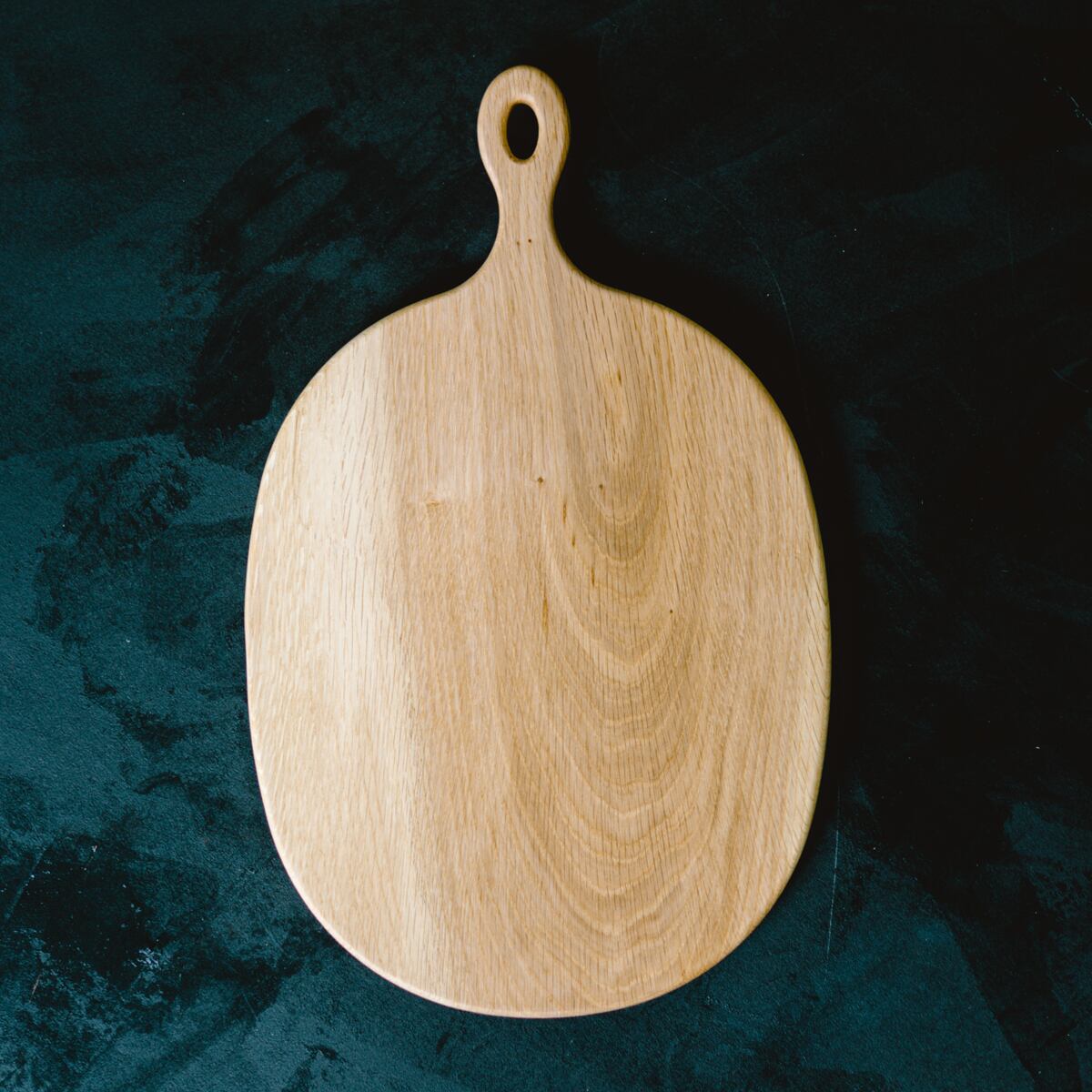 贅沢に1枚の無垢材から切り出したカッテイングボード。「切るという、まな板の機能」「美しく盛り付けられるという、うつわの機能」の2つの機能を使いやすいサイズで制作。用途によってサイズはM Size ・L Sizeの2種類を用意しています。