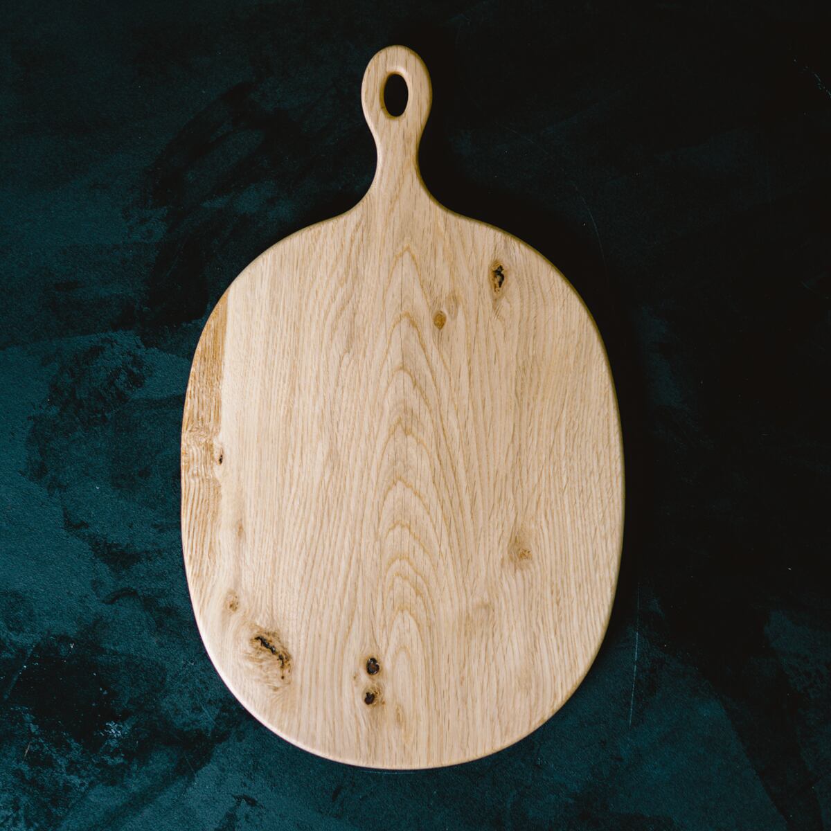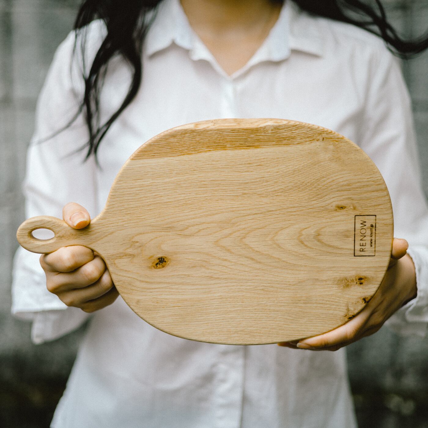 贅沢に1枚の無垢材から切り出したカッテイングボード。「切るという、まな板の機能」「美しく盛り付けられるという、うつわの機能」の2つの機能を使いやすいサイズで制作。用途によってサイズはM Size ・L Sizeの2種類を用意しています。