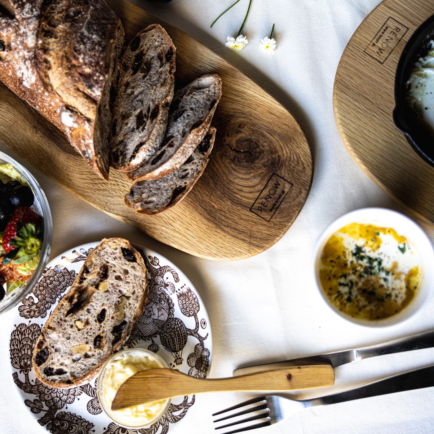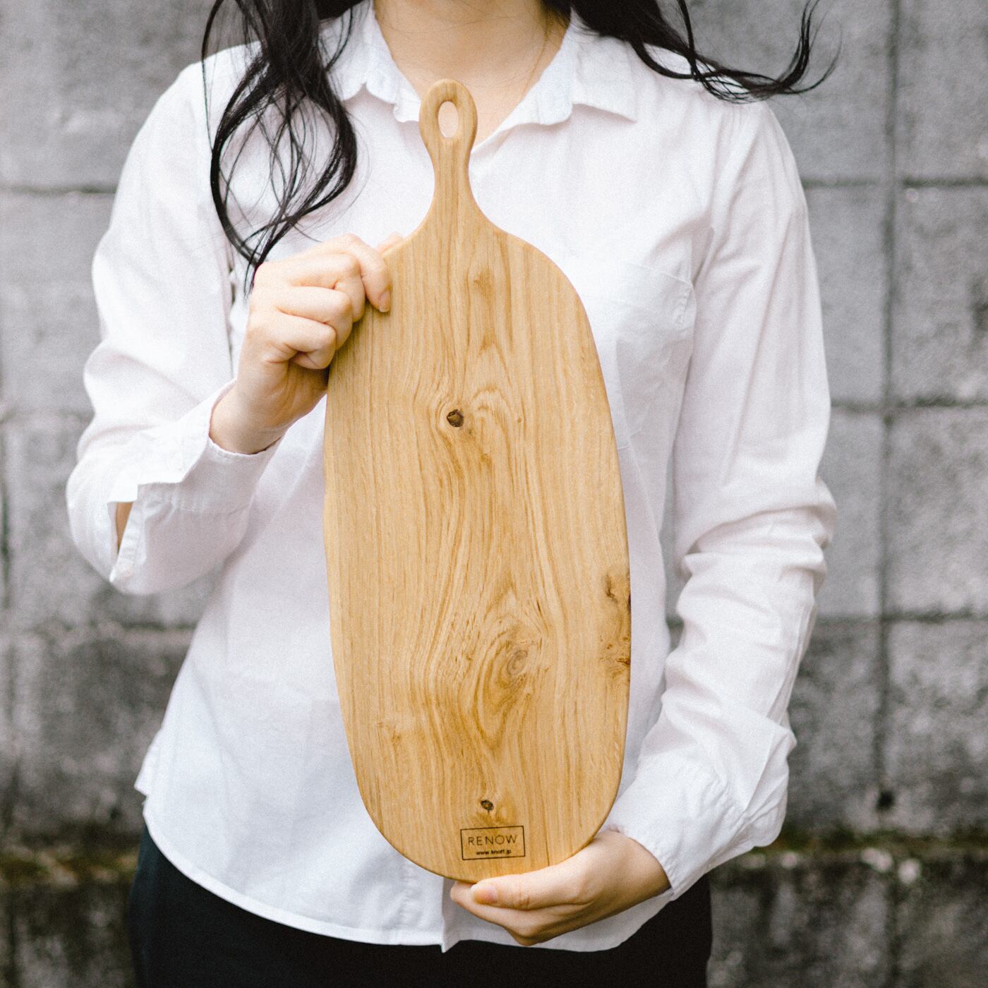 贅沢に1枚の無垢材から切り出したカッテイングボード。「切るという、まな板の機能」「美しく盛り付けられるという、うつわの機能」の2つの機能を使いやすいサイズで制作。用途によってサイズはM Size ・L Sizeの2種類を用意しています。