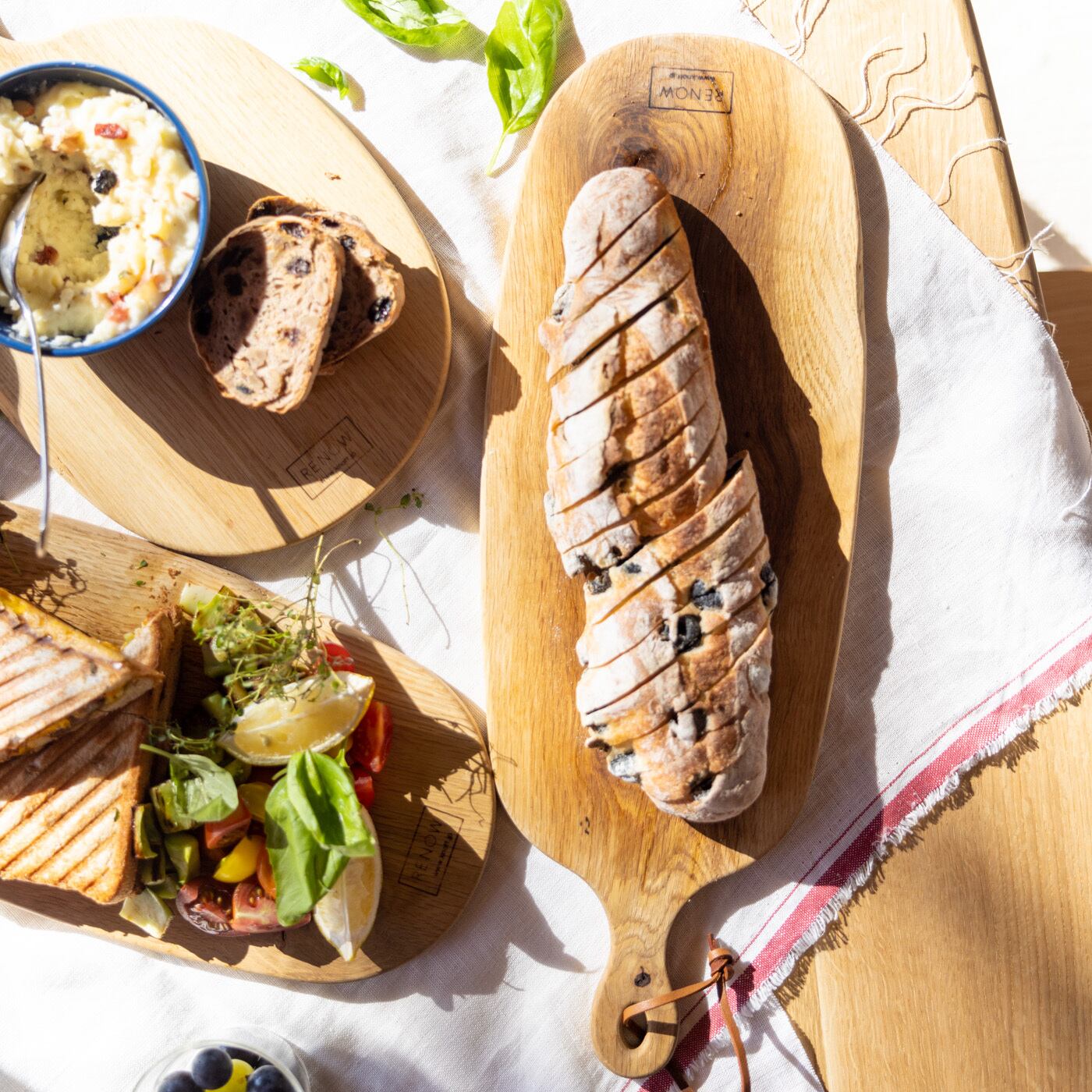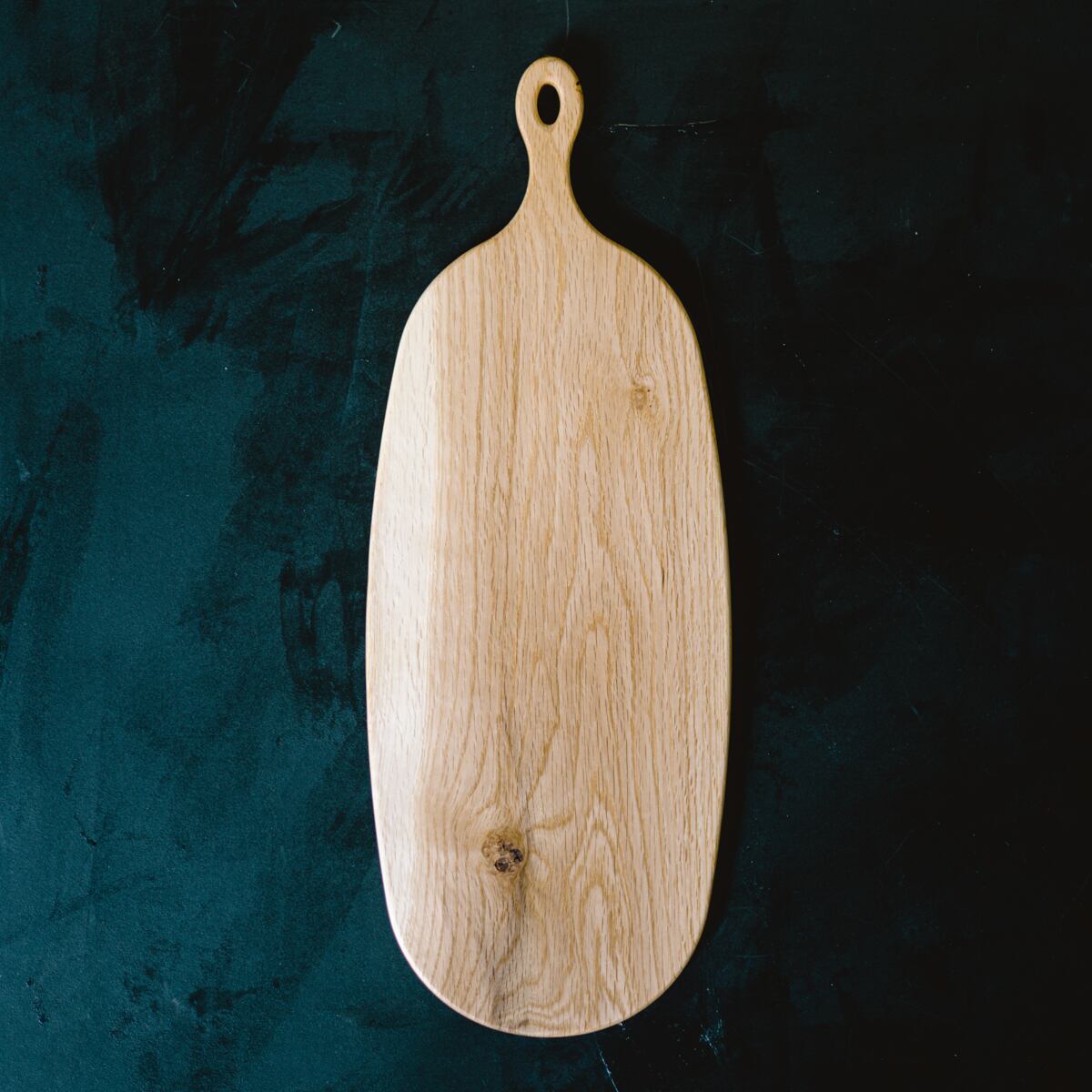 贅沢に1枚の無垢材から切り出したカッテイングボード。「切るという、まな板の機能」「美しく盛り付けられるという、うつわの機能」の2つの機能を使いやすいサイズで制作。用途によってサイズはM Size ・L Sizeの2種類を用意しています。