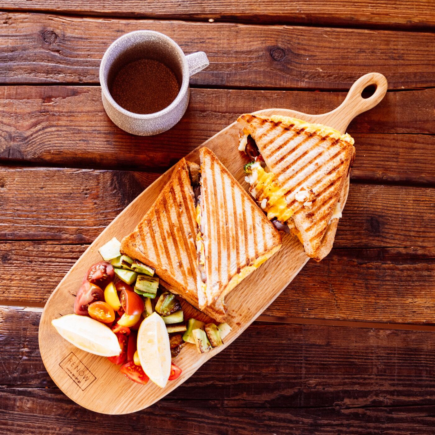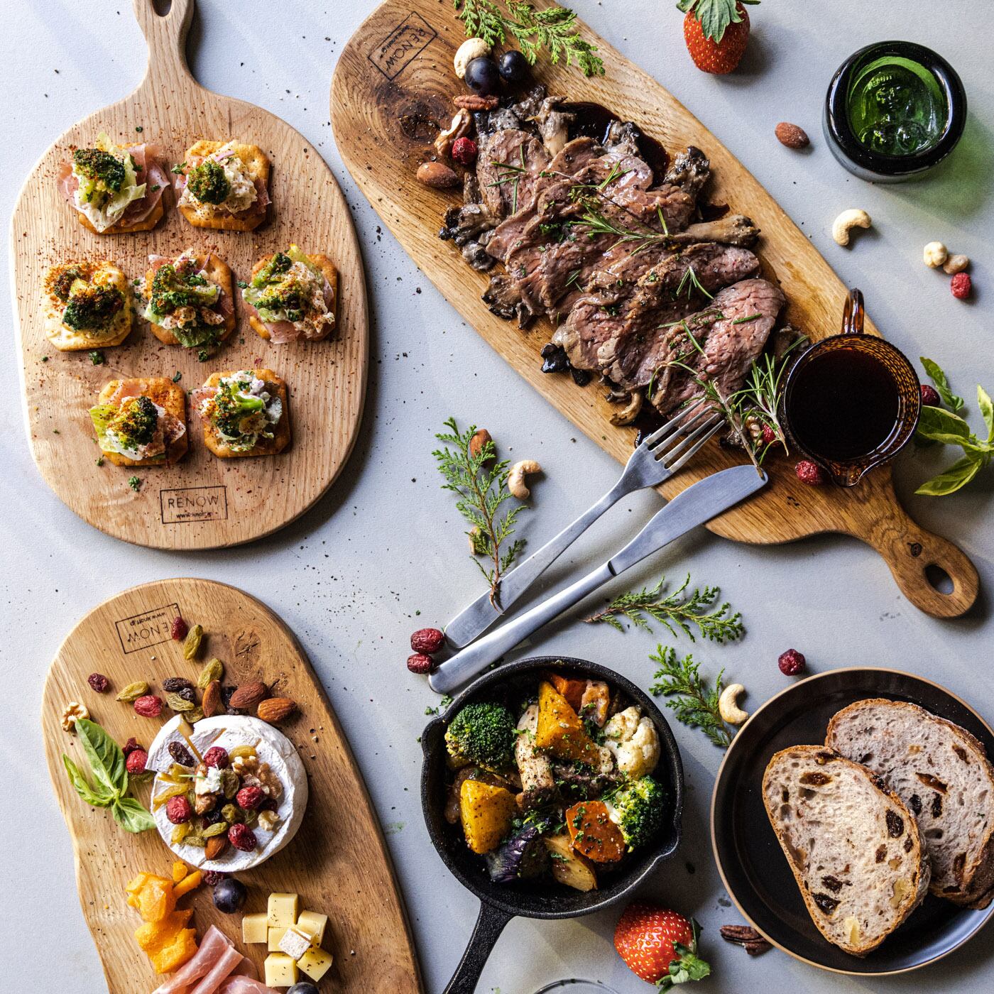 贅沢に1枚の無垢材から切り出したカッテイングボード。「切るという、まな板の機能」「美しく盛り付けられるという、うつわの機能」の2つの機能を使いやすいサイズで制作。用途によってサイズはM Size ・L Sizeの2種類を用意しています。